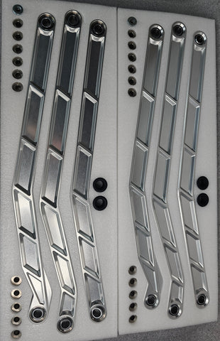 Our X3 Radius Rods were designed to improve your suspension performance while bringing a unique style to your ride. CNC machined from 6061 billet aluminum, the rods are hard anodized clear for longer lasting color. Performance improvements include teflon coated high strength uni-balls that include misalignment spacers. Rubber dust rings help keep small pebbles and dust out of the joints. Installation is quick and easy as the rod arms bolt into the factory position. Install diagram click here.