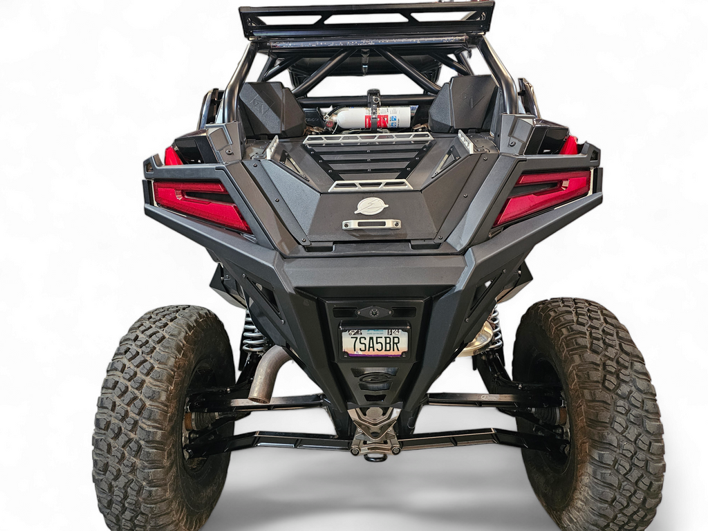 The Volt Series Rear Bumper for the 2020+ Polaris RZR Pro XP & Turbo R/Pro S provides protection and style to the rear of your side by side. The modern steel design helps shield the tail lights and chassis from impact. The bumper is finished in a hammer black powder coat, and the lightweight aluminum skid plate is finished in a satin black powder coat. The Volt Series Rear Bumper features an easy bolt-on installation. For product install click here