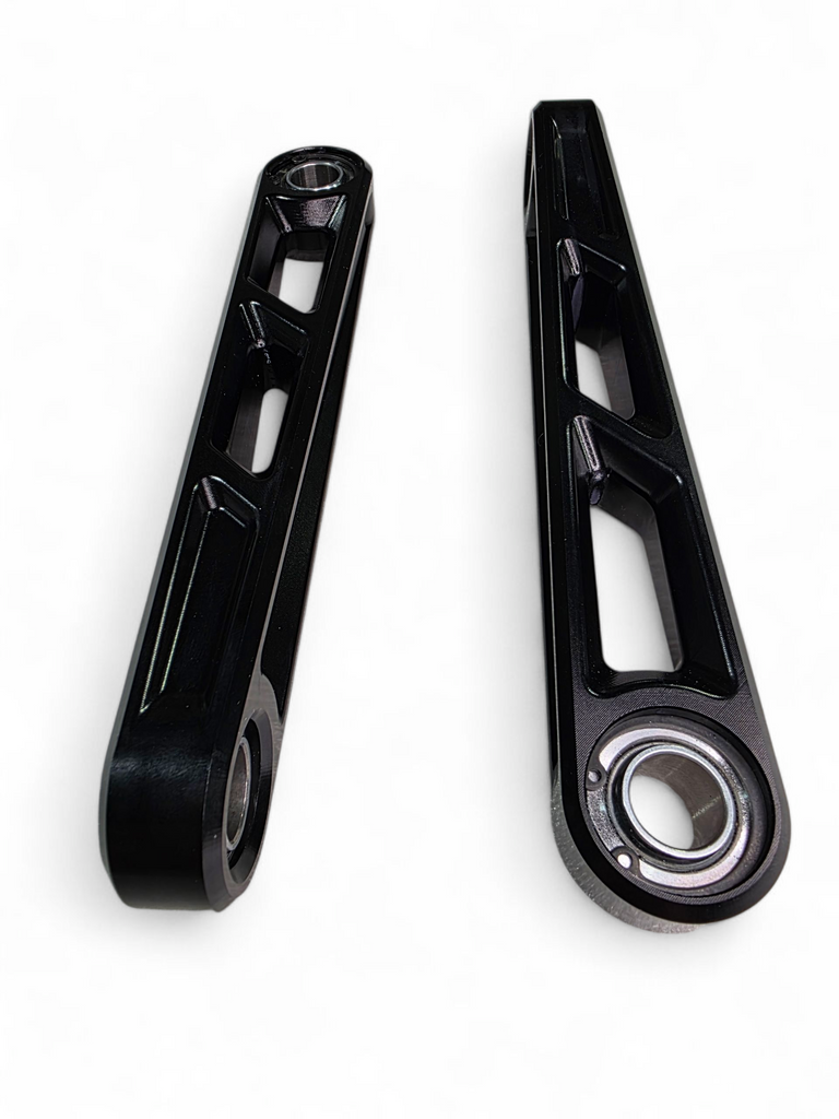 Our Front Sway Bar Links for the Can-am Maverick R are an essential upgrade for your Can Am to withstand the rigors of off-road driving. The teflon coated high strength uni-balls with misalignment spacers also increase the max angle of the bearing for improved performance. CNC milled from 6061 billet aluminum and finished with a hard anodized black, our front sway bar links offer improved strength and durability. Installation is easy as these bolt into the factory position.