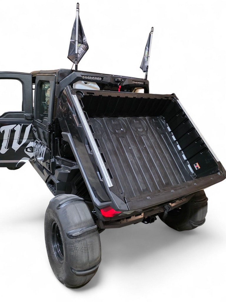 - Bed Tilting Capability: Our headache rack is designed to allow the bed of your Polaris Ranger to tilt, enhancing versatility and making it easier to access the truck bed when needed.