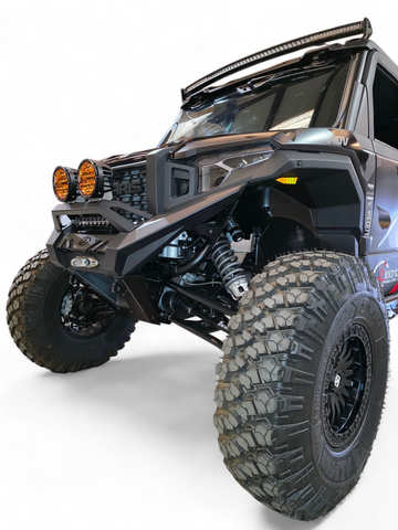 Elektric Offroad Designs brings you our Polaris Xpedition HDX Winch Bumper. The HDX Bumper has an aggressive and stylish design. Not only does this bumper follow the body lines and contour of the SXS but it also gives you a d-ring for towing points and several universal lighting mounts so you can configure the lights of your choice.