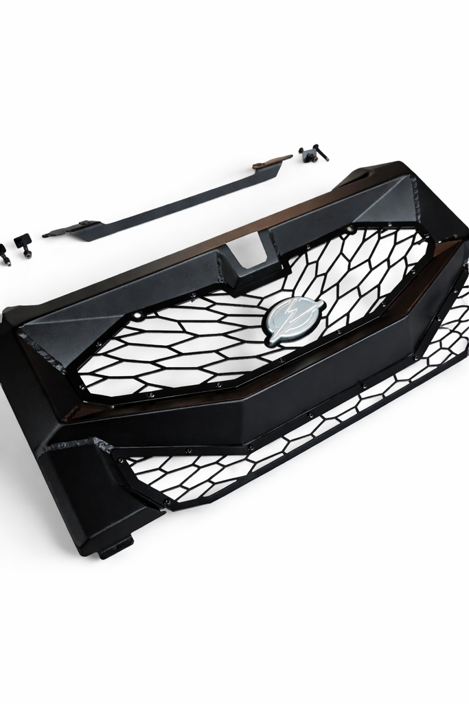 Crafted from high-quality steel, this grille not only enhances the aesthetic appeal of your vehicle but also offers superior durability. Unlike flimsy mesh designs from competitors, our grille boasts a rigid construction that provides enhanced protection and structural integrity. The elegant CNC Billet badge at the center adds a touch of refinement, showcasing the quality of Elektric Offroad Designs.