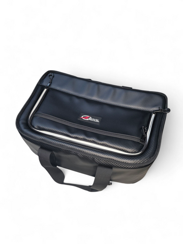 Exterior Material: Carbon-fiber-style vinyl with reinforced stitching